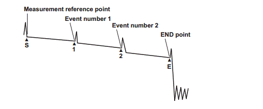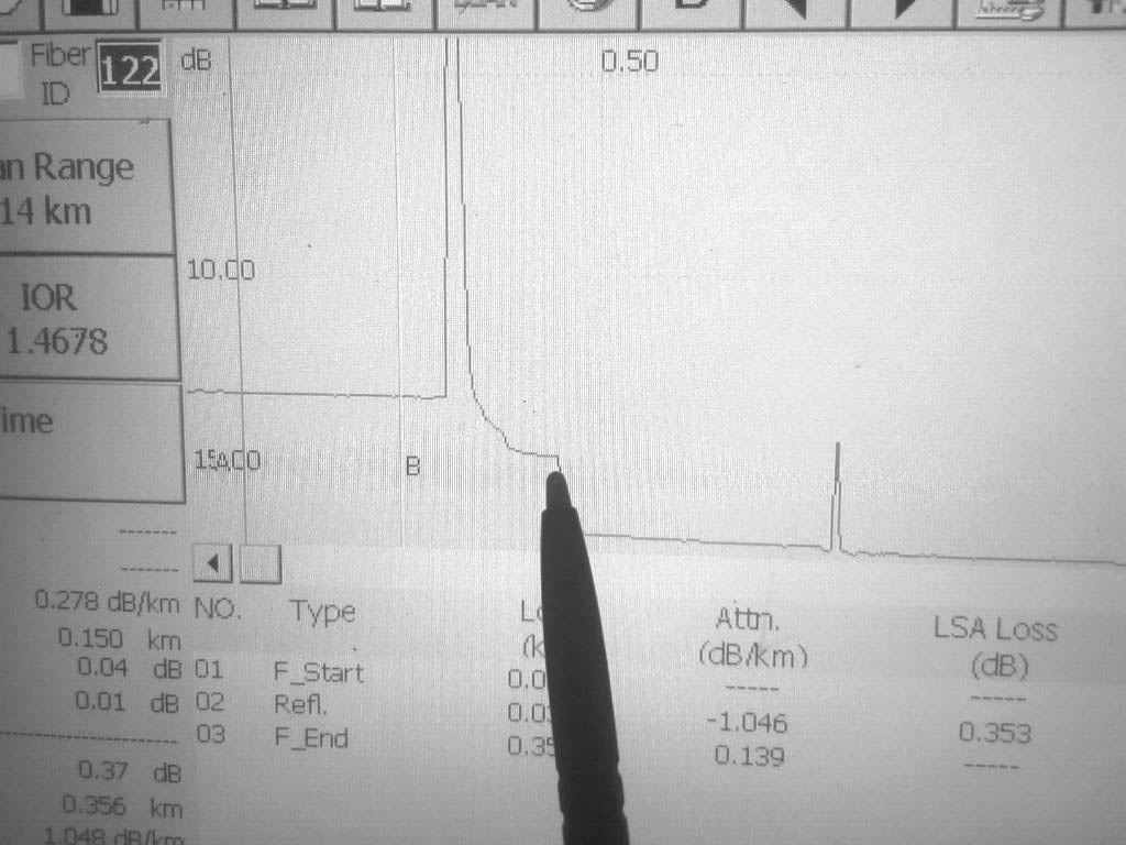 Contoh dari tampilan display pengukuran OTDR seperti pada gambar di bawah ini ;