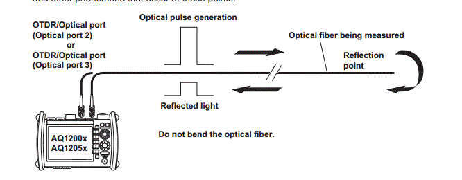 OTDR sendiri merupakan kepanjangan dari Optical Time Domain Reflectometer menggunakan efek hamburan Rayleigh dan pantulan Fresnel untuk mengukur karakteristik serat optik. Dengan mengirimkan pulsa cahaya (“optik” dalam OTDR) ke dalam serat dan mengukur waktu perjalanan (“domain waktu”) dan kekuatan pantulannya (“reflectometer”) dari titik di dalam serat, itu menghasilkan jejak karakteristik, atau profil, dari panjang vs. tingkat sinyal yang dikembalikan pada layar tampilan.