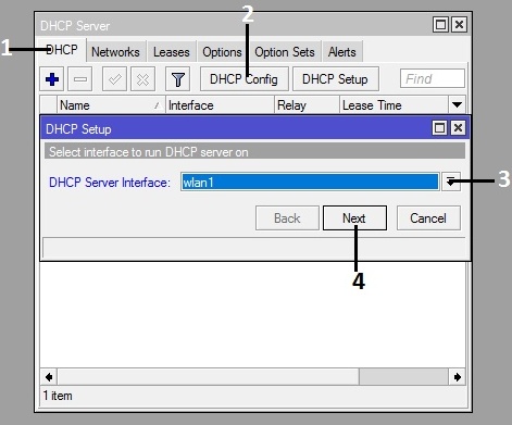 8. Masuk ke IP > DHCP Server Tab DHCP Pilih DHCP Setup Plih DHCP Server Interface (ether2) Pilih Next, Next, Next, Next sampai finish